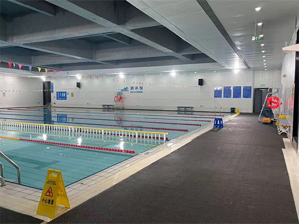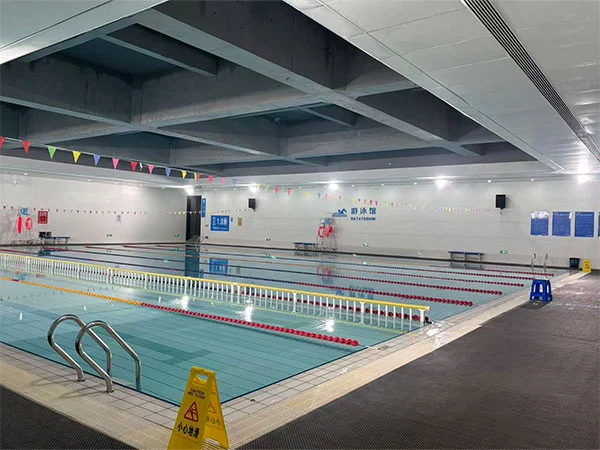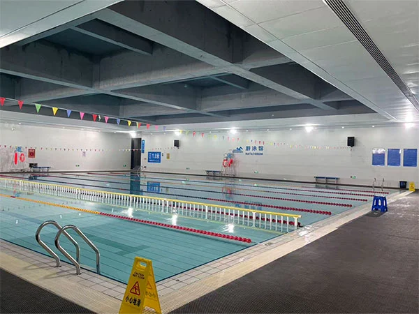 Det ydre af swimmingpoolen har et metal-fiskeskalapanelsystem, der skaber en skala-lignende lys- og skyggeeffekt, der ændrer sig med facadens krumning og sollysets retning, hvilket forbedrer "vandstrømmen". Hele tagkonstruktionen af det indendørs poolområde er blotlagt, med et spærværk, der spænder over 48 meter, hvilket understreger det eksplicitte udtryk for strukturel logik og forstærker den rumlige skala og følelsen af kraft i sportspladsen. Spillestedet rummer to pools: et konkurrencebassin og et træningsbassin. Konkurrencebassinet er 50 meter langt og 25 meter bredt, med 8 baner; træningsbassinet er 50 meter langt og 17 meter bredt, med 6 baner. Begge bassiner er 2 meter dybe.